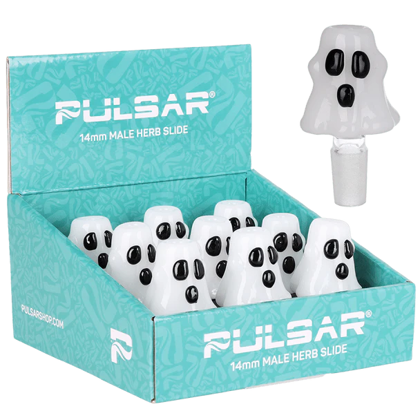 The Ghosty Herb Slide is a charming seasonal accessory that brings playful Halloween vibes to any glass setup. Each slide features a detailed ghost figure perched atop the bowl, making it a standout conversation piece. Designed to fit 14mm female joints, this slide is crafted from premium borosilicate glass for strength, heat resistance, and smooth performance.